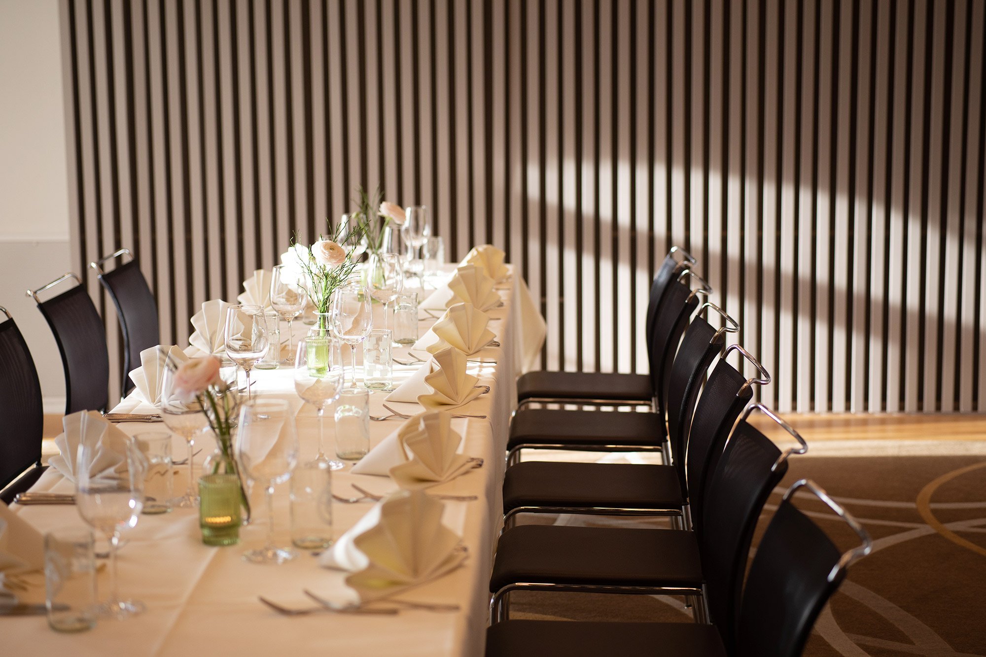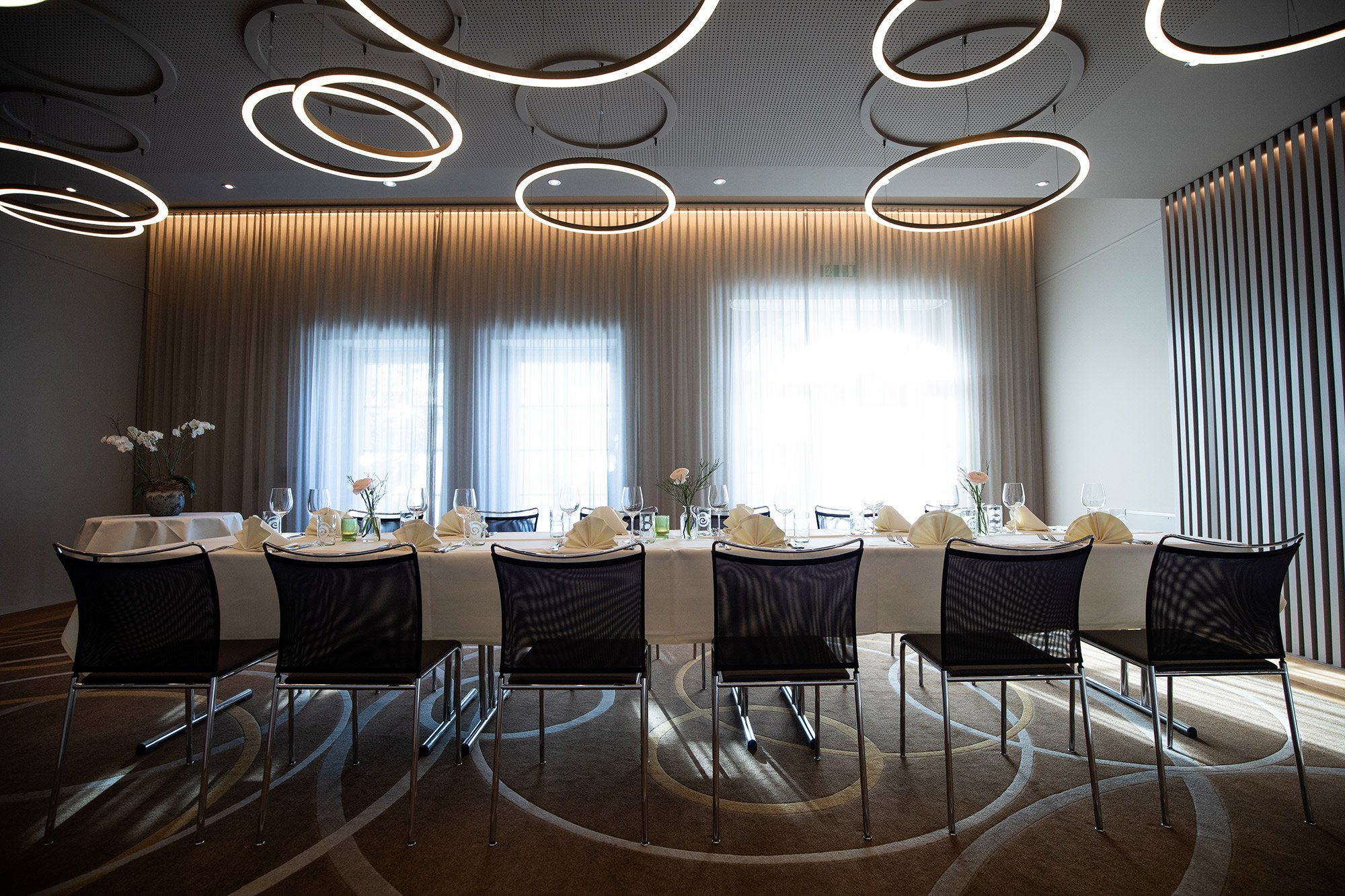 Der in zwei autonome Teile abtrennbare Saal ist optimal für grössere Feiern und Veranstaltungen wie Geschäftsessen und Feiern.